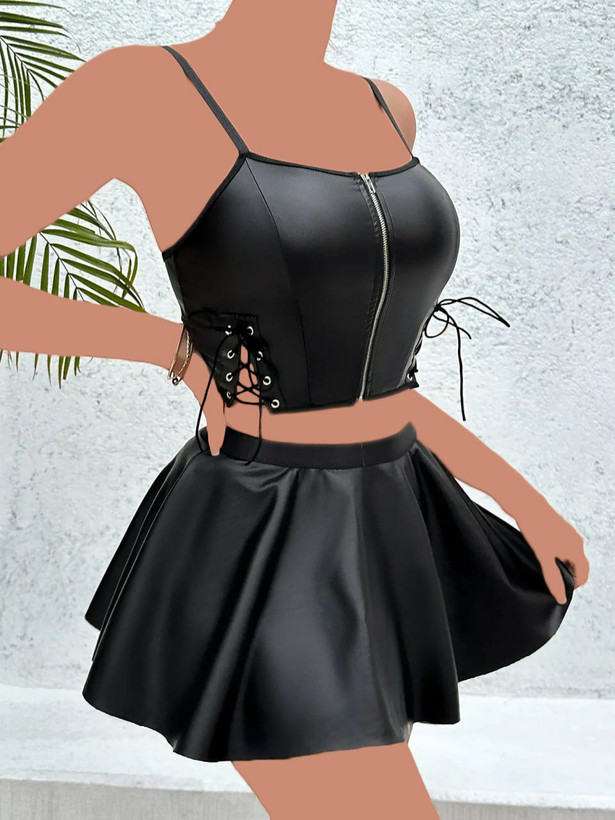 ست فانتزی لاتکس چرم 2 تکه سایز: L(36-38) XL(40-42) کد: 6904